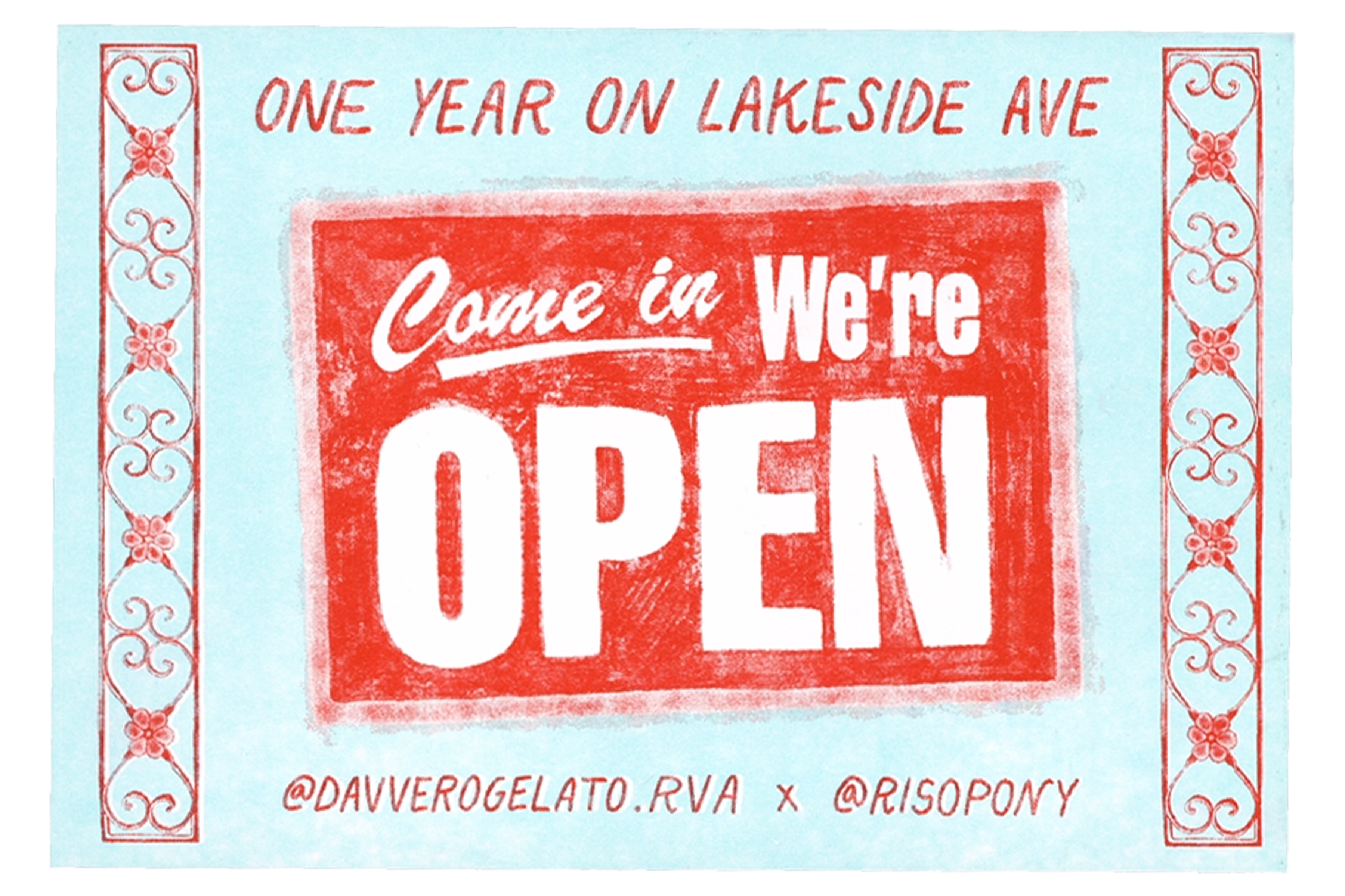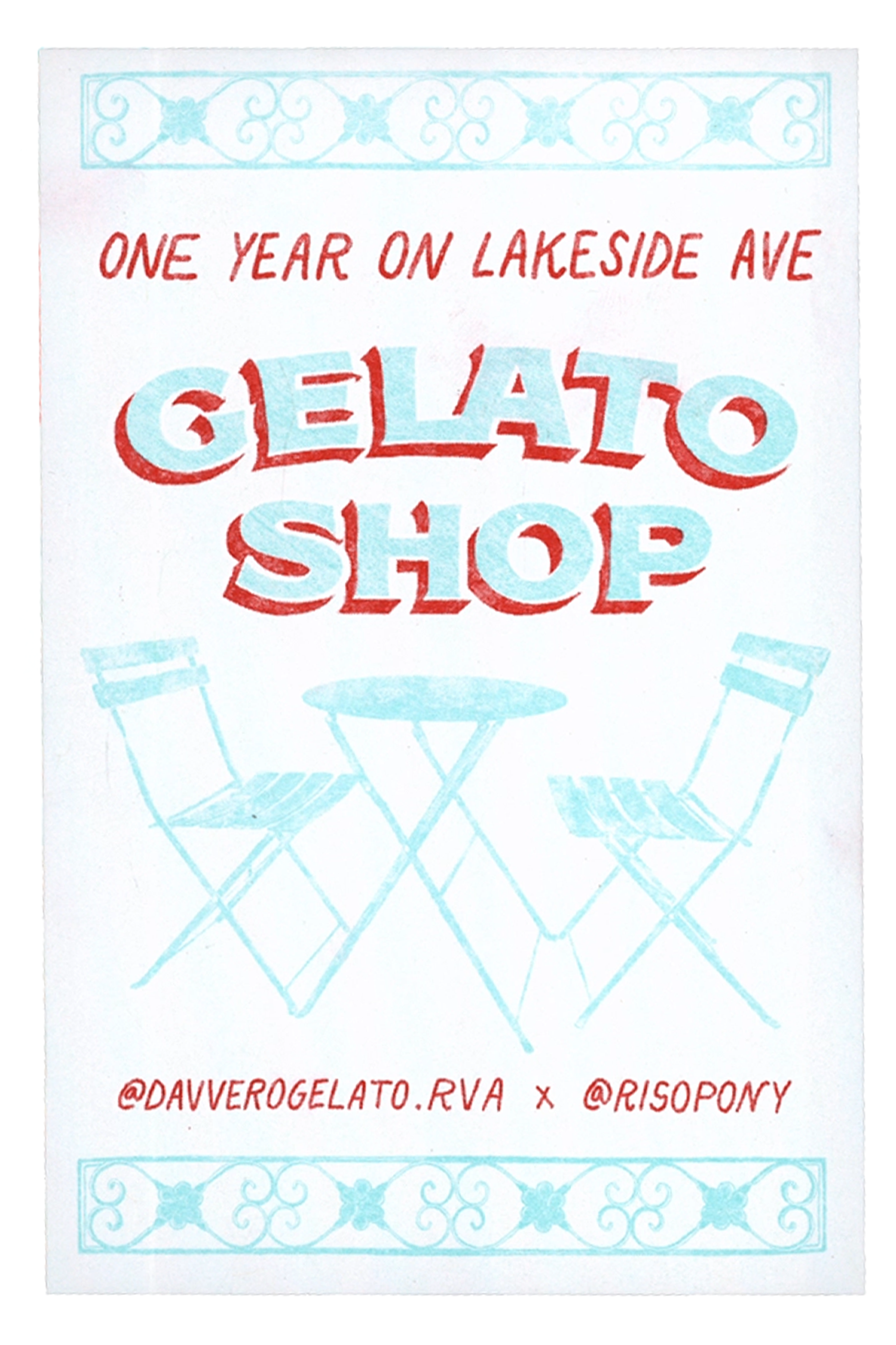 risograph printed 4x6” postcards for davvero gelato (2025)