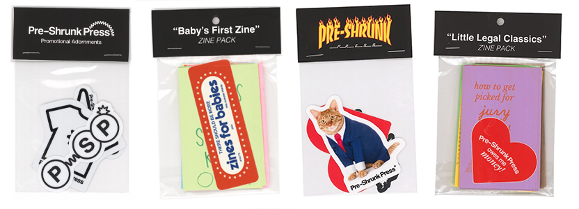 pre-shrunk press zines, stickers, and package design (2022-2025)