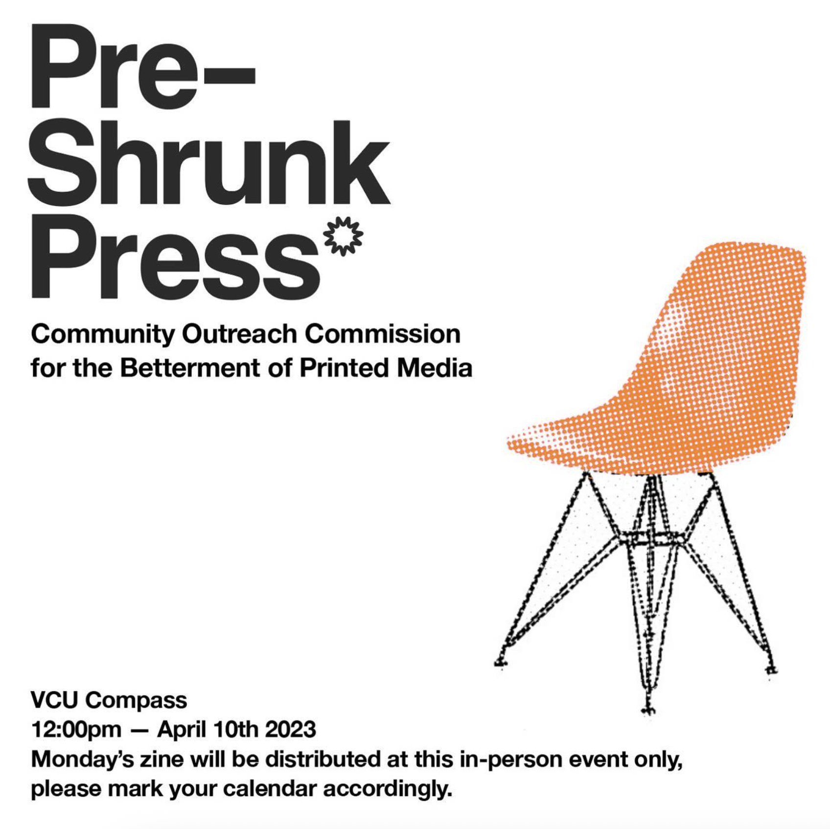 pre-shrunk press community outreach commission for the betterment of printed media digital flier (2023)